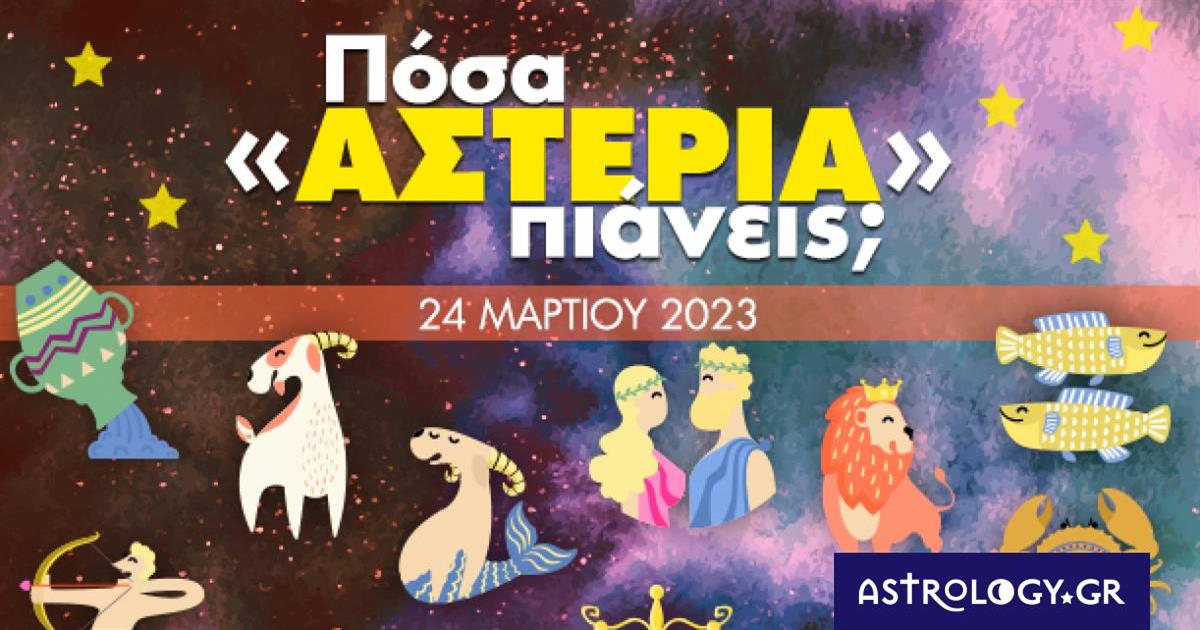 Αναζήτησε το ζώδιό σου στην παρακάτω photo gallery και μάθε πόσα αστέρια συγκεντρώνεις σήμερα, 24/03 στον έρωτα, το χρήμα, την εργασία, το σπίτι και την υγεία σου!