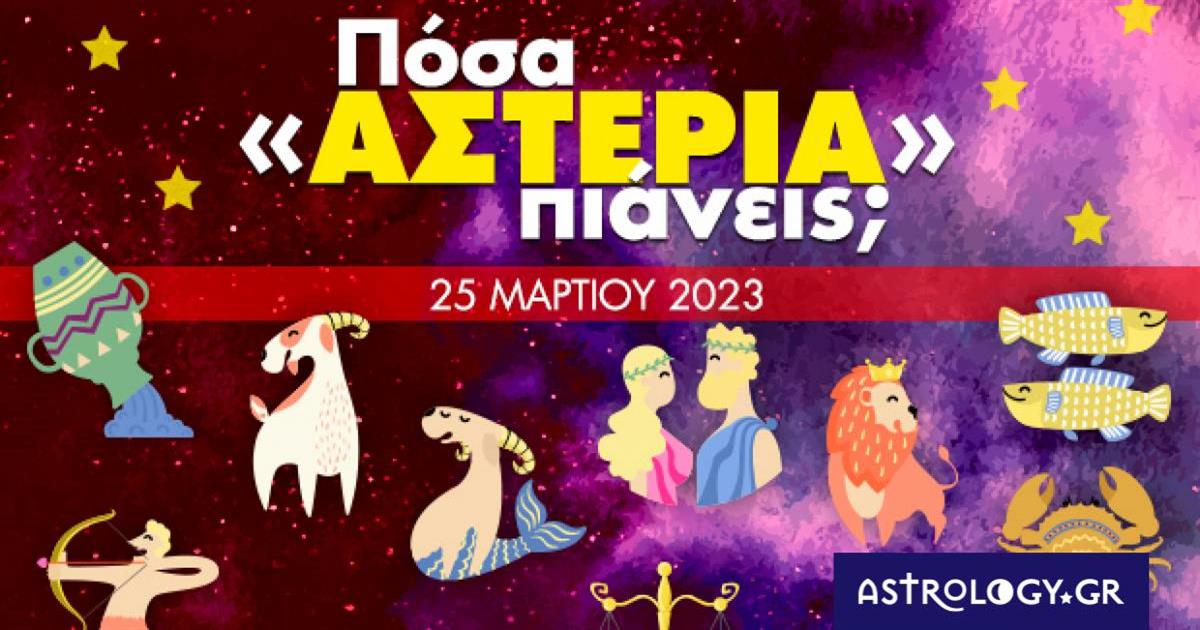 Αναζήτησε το ζώδιό σου στην παρακάτω photo gallery και μάθε πόσα αστέρια συγκεντρώνεις σήμερα, 25/03 στον έρωτα, το χρήμα, την εργασία, το σπίτι και την υγεία σου!