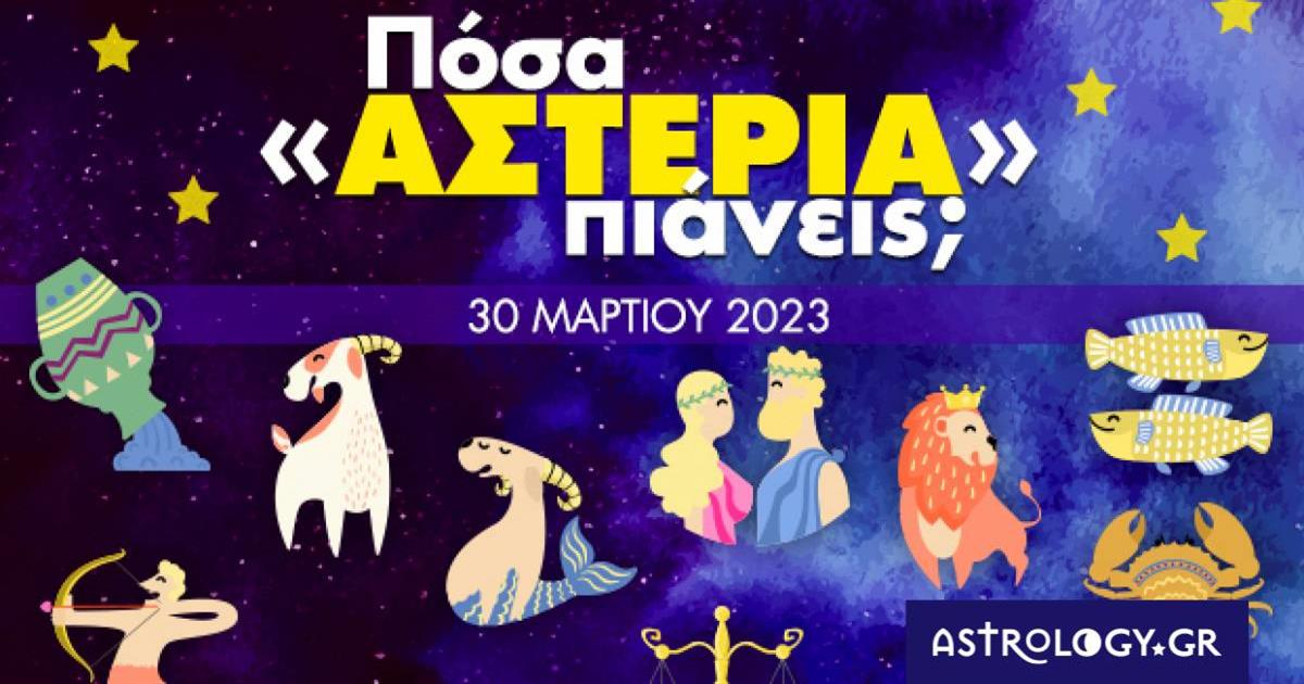 Αναζήτησε το ζώδιό σου στην παρακάτω photo gallery και μάθε πόσα αστέρια συγκεντρώνεις σήμερα, 30/03 στον έρωτα, το χρήμα, την εργασία, το σπίτι και την υγεία σου!