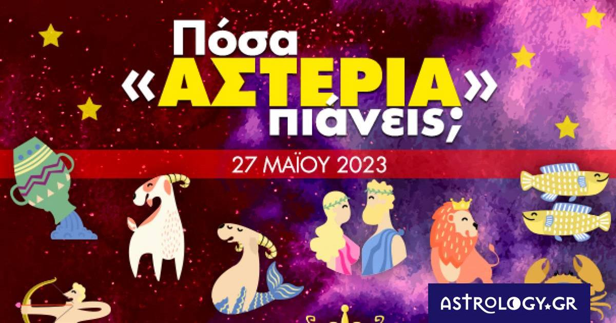Αναζήτησε το ζώδιό σου στην παρακάτω photo gallery και μάθε πόσα αστέρια συγκεντρώνεις σήμερα, 27/05 στον έρωτα, το χρήμα, την εργασία, το σπίτι και την υγεία σου!