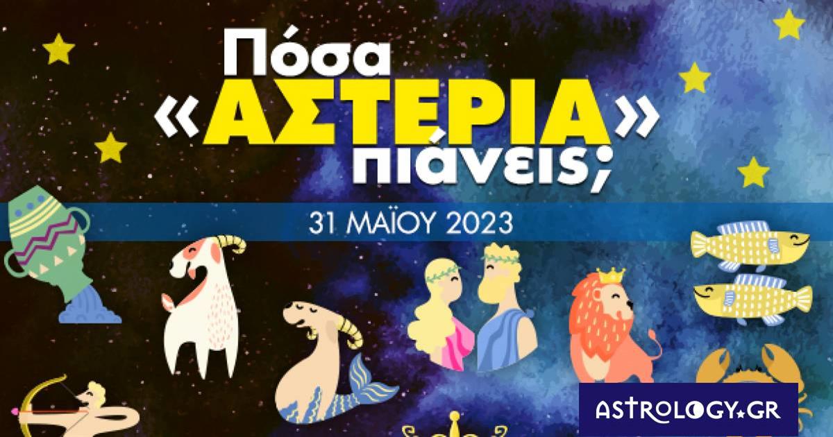 Αναζήτησε το ζώδιό σου στην παρακάτω photo gallery και μάθε πόσα αστέρια συγκεντρώνεις σήμερα, 31/05 στον έρωτα, το χρήμα, την εργασία, το σπίτι και την υγεία σου!