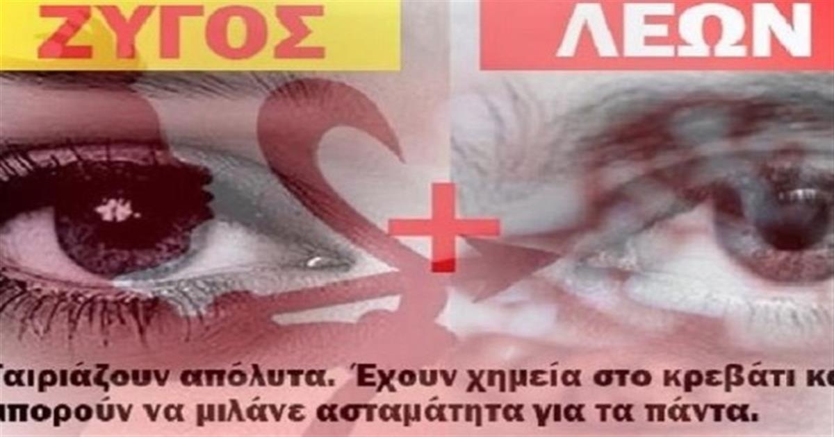 Ο Λέων και ο Ζυγός είναι ένα τέλειο ζευγάρι. Αυτά τα δύο ζώδια έχουν πολλά πράγματα κοινά όπως είναι η φιλικότητα, τα χαρίσματα, η Kαυτή τους διάθεση για «παιχνίδια» στο κρεβάτι, αλλά και ότι και οι δύο αναζητούν την προσοχή.