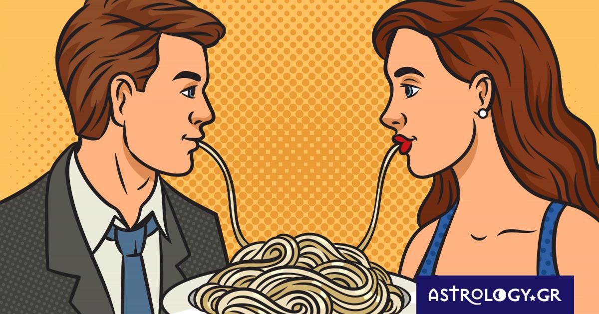 Δυο ερωτευμένα πιτσουνάκια που έχουν βγει για φαγητό. Είναι και οι δυο ρομαντικοί τύπου, έχουν μάτια μόνο ο ένας για τον άλλο και αποφασίζουν να μοιραστούν ένα μακαρόνι. Θυμίζουν λίγο μια σκηνή από την ταινία της Disney η Lady και ο αλήτης…Ψήφισε λίγο πιο κάτω και πες μας, τι ζώδια πιστεύεις ότι είναι ο άντρας και η γυναίκα της φωτογραφίας.